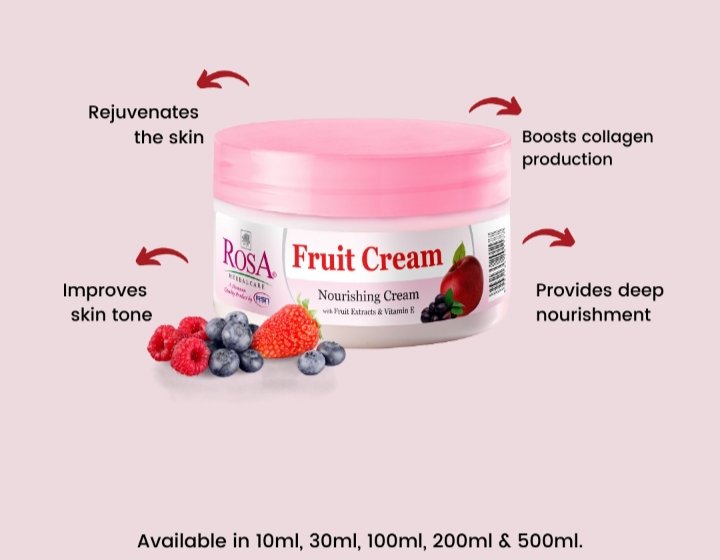 It is a natural multivitamin fruit cream for all types of skin. It contains rich sources of vitamins C and D from fresh fruits. Skin receives natural vitamins and gets revitalized. You can nourish your skin and? whiten your complexion naturally.