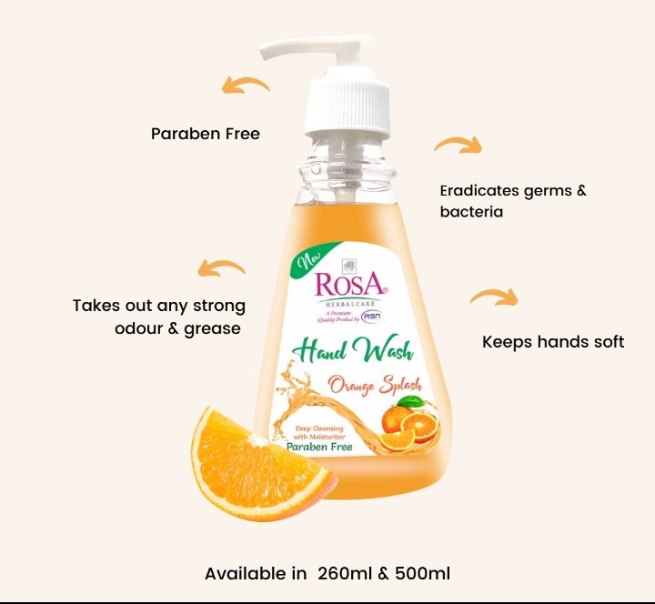 Rosa Orange Splash Hand wash helps eradicate germs and bacteria while leaving your hands feeling soft and supple and smelling heavenly.